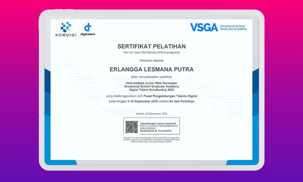 Hello, I’m Erlangga. A Fullstack Web Developer with a technical background that combines web development and an understanding of network infrastructure. Experienced in developing web applications using Laravel and Bootstrap to effectively support business needs and operational efficiency across various projects. In web development, I prioritize clean and maintainable code while ensuring system security and long term stability. I regularly build reliable backend systems alongside functional and easy to use web interfaces that support daily workflows. Beyond web development, I also have knowledge of Networking, Server Management, and IoT, which allows me to understand solutions end to end from the web layer to the supporting infrastructure. I am committed to continuous learning and adapting to new technologies to deliver reliable solutions aligned with modern industry needs.